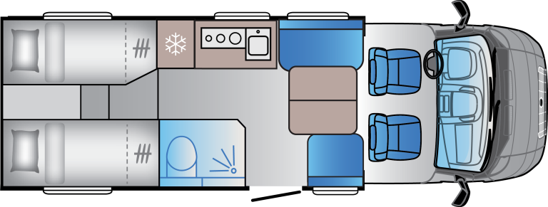 Hvert Sun Living-kjøretøy er laget med omtanke. Fra elegante rammevinduer som gir bedre isolasjon, bedre stil og forbedret sikkerhet, til slitesterk polyester som beskytter kjøretøyets underside.